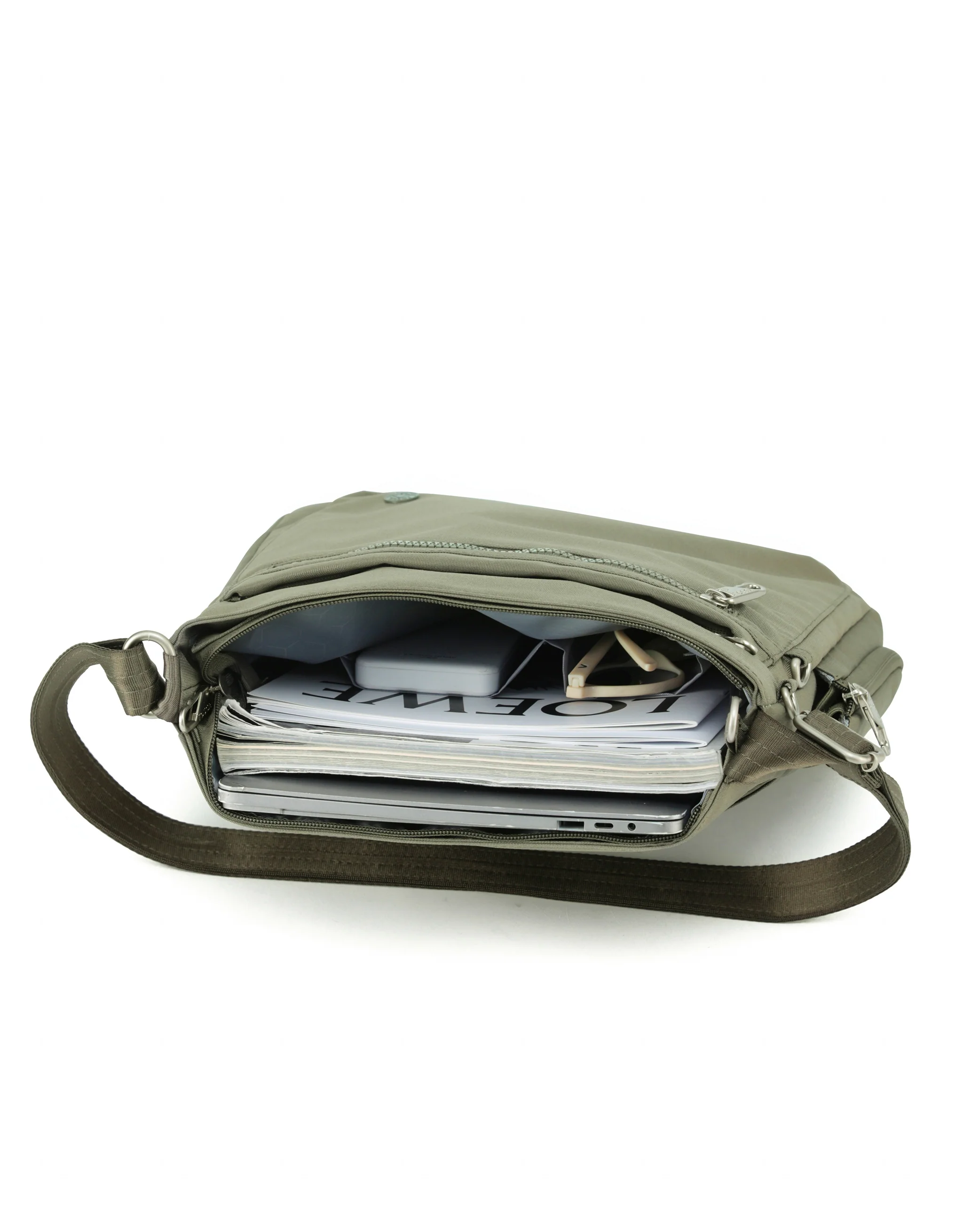 Anti-Theft Square Large Shoulder Bag with Handle - Khaki