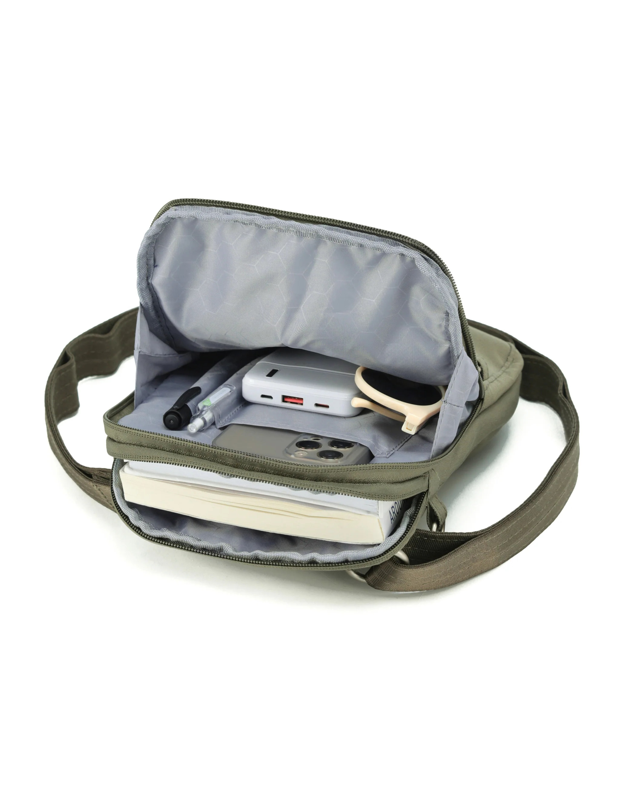 Anti-Theft Cross Body Shoulder Bag - Khaki