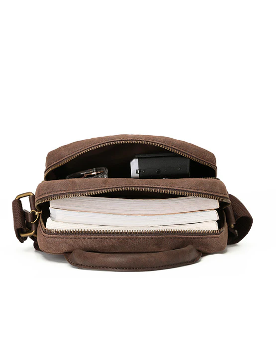 Waxed Canvas Cross-body Bag - Brown